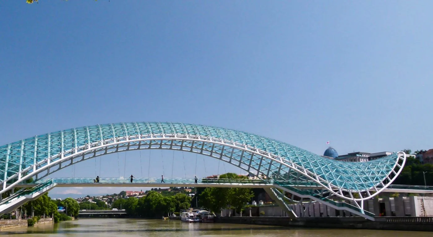 Il y a de nombreuses églises et cathédrales réparties dans toute la ville et nous sommes entrés dans la plupart d’entre elles. Il y a un fort qui surplombe la ville et une statue de la « Mère Géorgie » qui se dresse à côté du fort. Nous y sommes montés un soir pour le coucher du soleil. L’un des sites les plus remarquables était le nouveau pont moderne reliant les quartiers des deux côtés de la rivière.